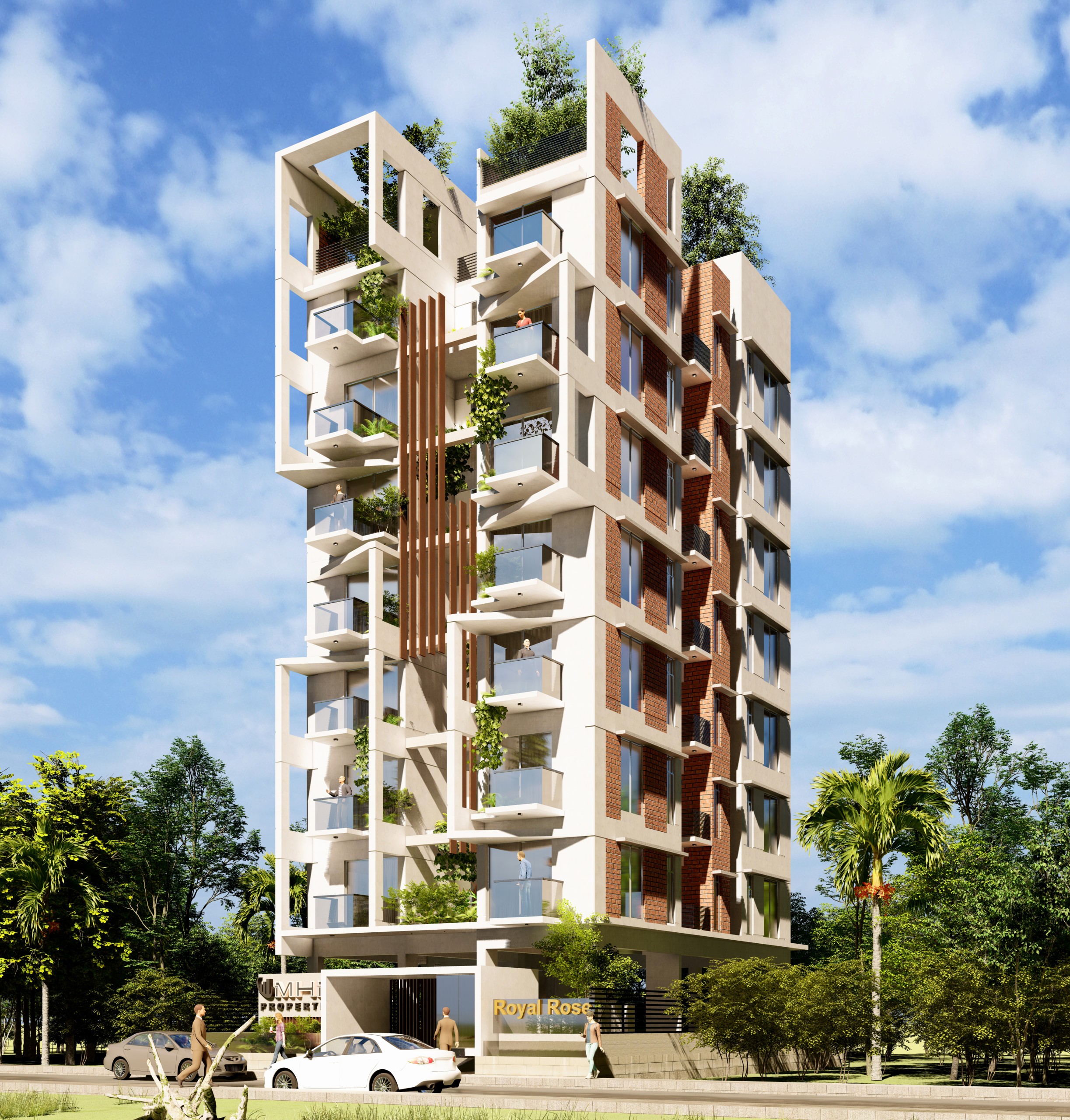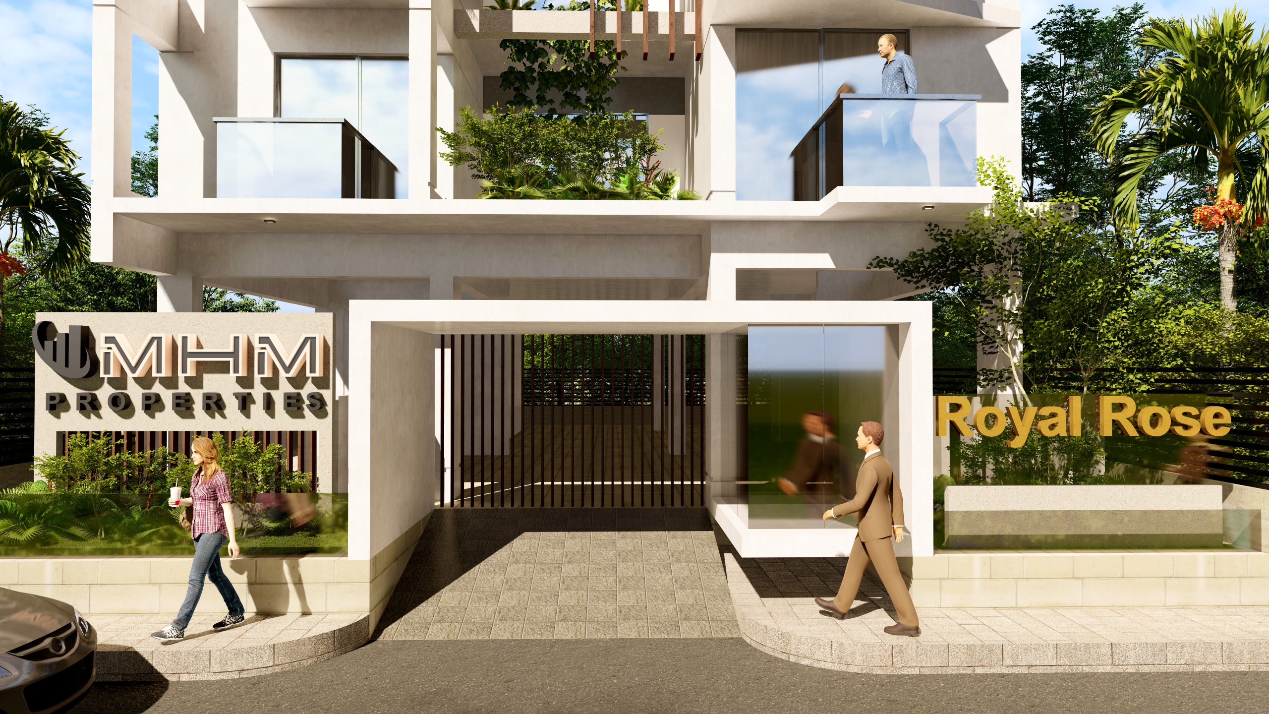 - Secured decorative entrance for apartments and parking area with adequate lighting.